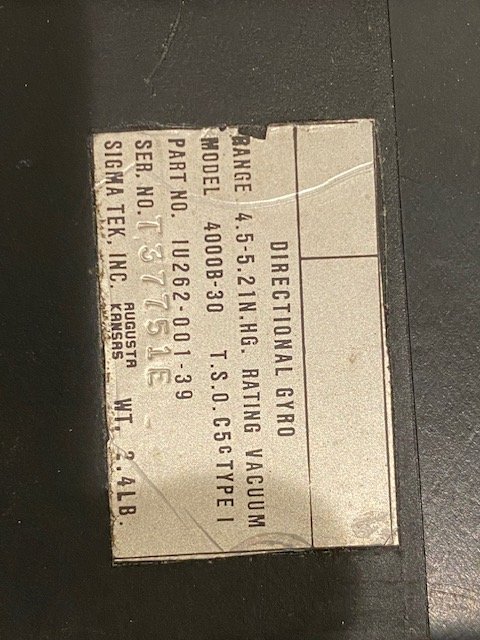 Directional Gyro, SIGMA TEK INC. Model 4000B-30 TSO. S/N T37751E.